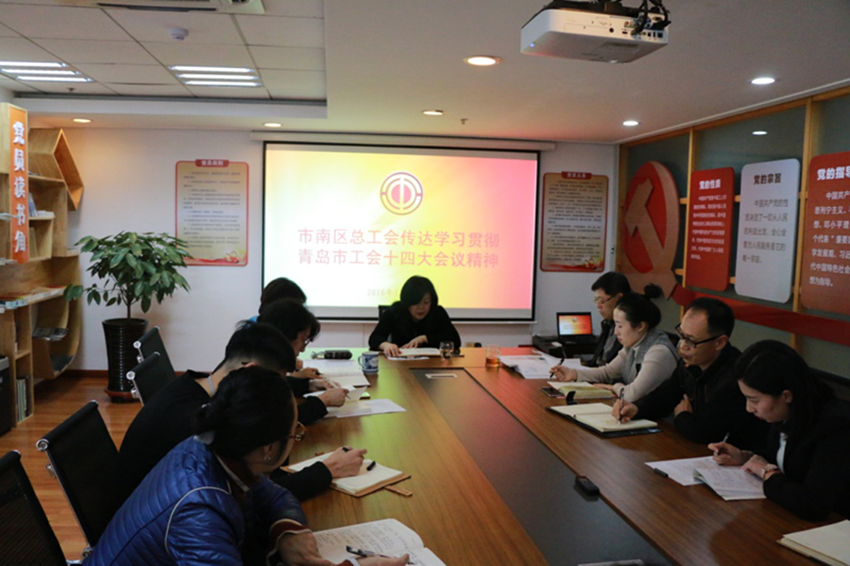 12月25日下午,市南区总工会组织全体党员干部认真学习市工会十四次代表大会精神。市南区党组书记、主席牛鲁彬主持会议。会上,党组成员、副主席岳增海同志传达了刘圣珍主席代表青岛市总工会第十三届委员会所作的工作报告及大会精神。报告用“六个坚持”全面总结市总十三届委员会的工作,客观分析了目前各级工会存在的四个方面的不足,用“四个全面把握”和“四个率先走在前列”深度解读、落实了习近平新时代中国特色社会主义思想和关于工运事业、工会工作的重要论述,其中谈到的“四个一抓到底”体现了市总工会抓好工作的信心和决心;对于今后5年的工作刘主席用“六个着眼于”从六个大的方面21项具体措施作了明确部署,为今后一个时期全市工会工作指明了方向。