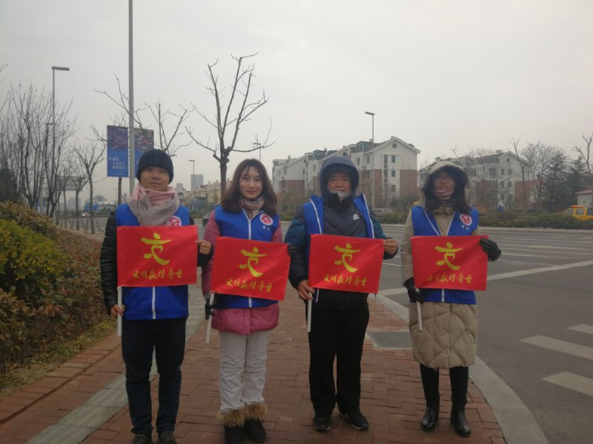 寒风凛冽,挡不住崂山区总工会志愿者们参与文明交通引导、共建文明城市的服务热情。志愿者们个个精神抖擞,着统一的志愿者标志马甲服装,手执“文明赢得尊重”交通引导旗,站在车流密集的十字路口,指挥来往的非机动车辆和行人按红绿灯指示通行。当有行人问路时,志愿者就耐心回答指路。当遇到独自过马路的小朋友或腿脚不便的老年人时,志愿者就安全护送过马路,当遇到强行闯红灯的不文明路人或非机动车主时,志愿者就勇于劝导或阻挡,确保不发生乱穿马路现象。