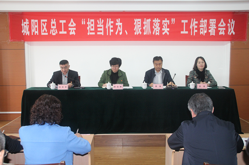3月27日上午,城阳区总工会召开了全区工会“担当作为、狠抓落实”工作部署会议,各街道总工会专职副主席、区直各单位工会主席,部分基层工会主席,区总工会机关干部,共计80人参加了会议。会议传达了市总领导在全市工会“担当作为、狠抓落实”工作部署会议上的讲话精神,部署了2019年全区工会攻“山头”重点工作,会上区总工会还与各街道总工会签订了《城阳区总工会“担当作为、狠抓落实”工作责任书》。
