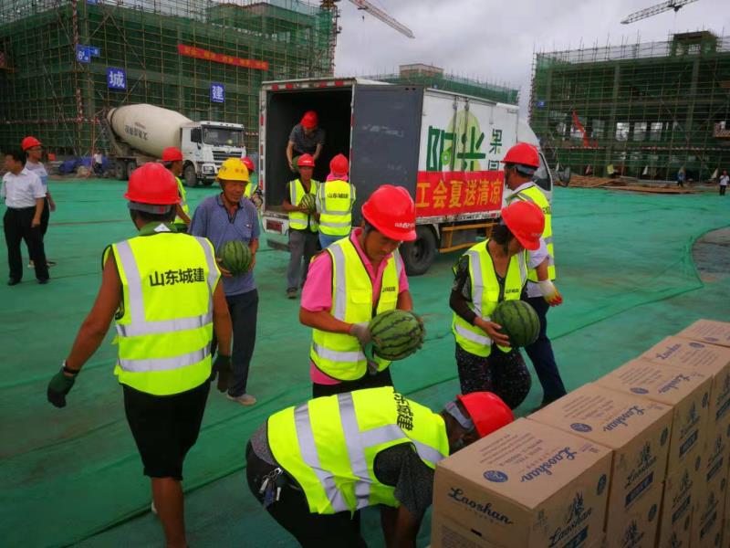 7月19日,莱西市总工会启动2019年度“夏送清凉”活动。由班子成员带队,分四组走访慰问了莱西市部分在建重点项目户外作业、高温作业的一线职工、农民工,送去西瓜、矿泉水等防暑降温物品,助力重点工程建设。