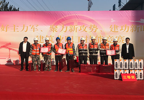 竞赛项目包括砌筑、400*100桥架三通漏斗制作,实操现场选手们有条不紊、沉着冷静,展现了职工扎实的技术功底和积极进取的精神风貌。最终,中建八局四公司姜永标、于吉广获得砌筑项目一等奖,中建八局四公司吴良坚、朱德付获得安装项目一等奖,中建八局四公司樊名金、刘瑞振,青建建兴郭庆祝、郭银行获得砌筑项目二等奖,中建八局四公司庄杰、李洪岗、陈显科、陈中连获得安装项目二等奖,中建八局四公司胡存勇、李雄举,中建中新公司赵荫启、杨正民、高远国、杨晓毛获得砌筑项目三等奖,中建八局四公司乔颜超、杨卫国、陈华卫、陈新国,中建中新公司刘宏峰、孙克龙获得安装项目三等奖。