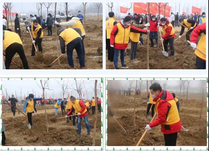 3月8日,平度市群团组织“共植凤凰林,邀您一起来”助建凤台街道绿化基地建设启动仪式在凤台街道泽河北岸举行。平度市委常委、统战部部长王富军,市政协副主席刘明娟、崔传富等领导出席启动仪式,平度市总工会党组书记、主席柴生华主持启动仪式。启动仪式现场彩旗飞扬,来自全市群团组织的23支志愿者队伍身着不同颜色、不同图案代表不同寓意的志愿者服装齐聚植树现场,12家热心公益企业的部分职工也参加了植树活动。