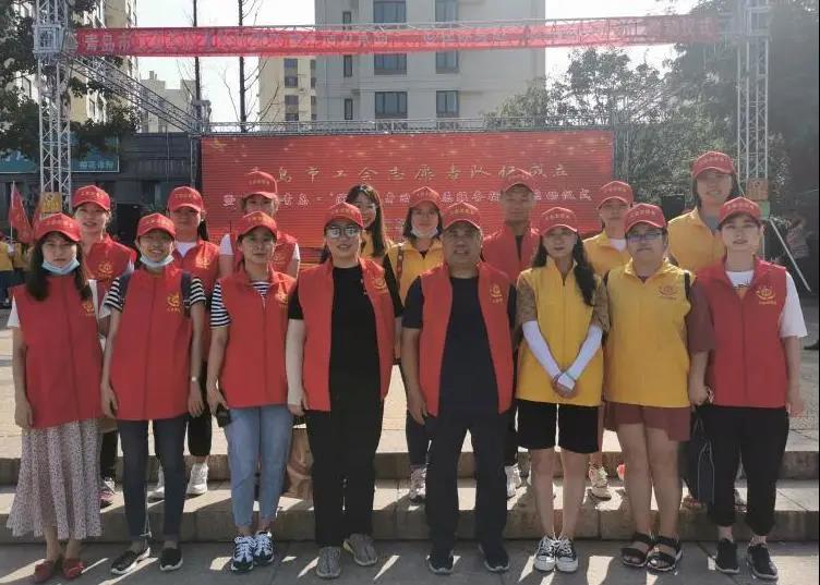 8月29日,青岛市工会志愿者队伍成立暨“活力青岛·@在你身边”启动仪式在青岛劳动广场举行,15名崂山区总工会志愿者参加。