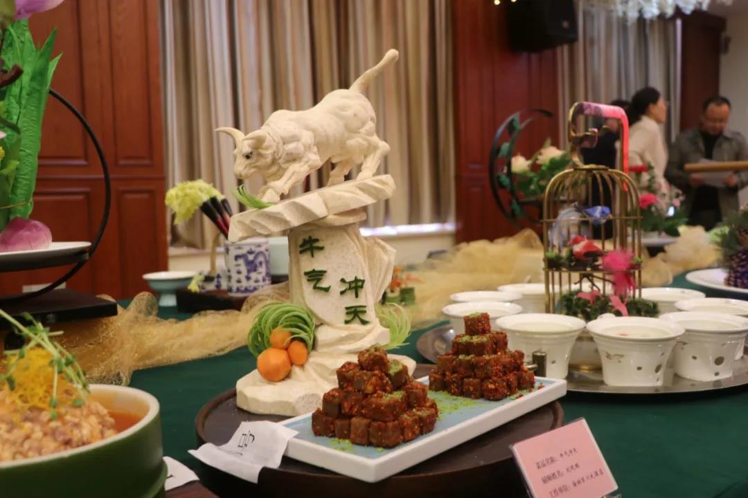 比赛现场,来自全市46名烹饪行业职工同台竞技,参赛选手提前完成自定的菜品,由3位专业评委、5位大众评委及3位巡视评委现场对菜品形态色泽、口位质感、火候香气、创新创意等6个方面进行打分评判。百鸟朝凤、金汤粗粮鲈鱼、牛气冲天、鲤鱼跃龙门等各具特色的菜品,在选手们的高超厨艺下呈现出独特的视觉和味觉体验,获得评委们频频称赞。