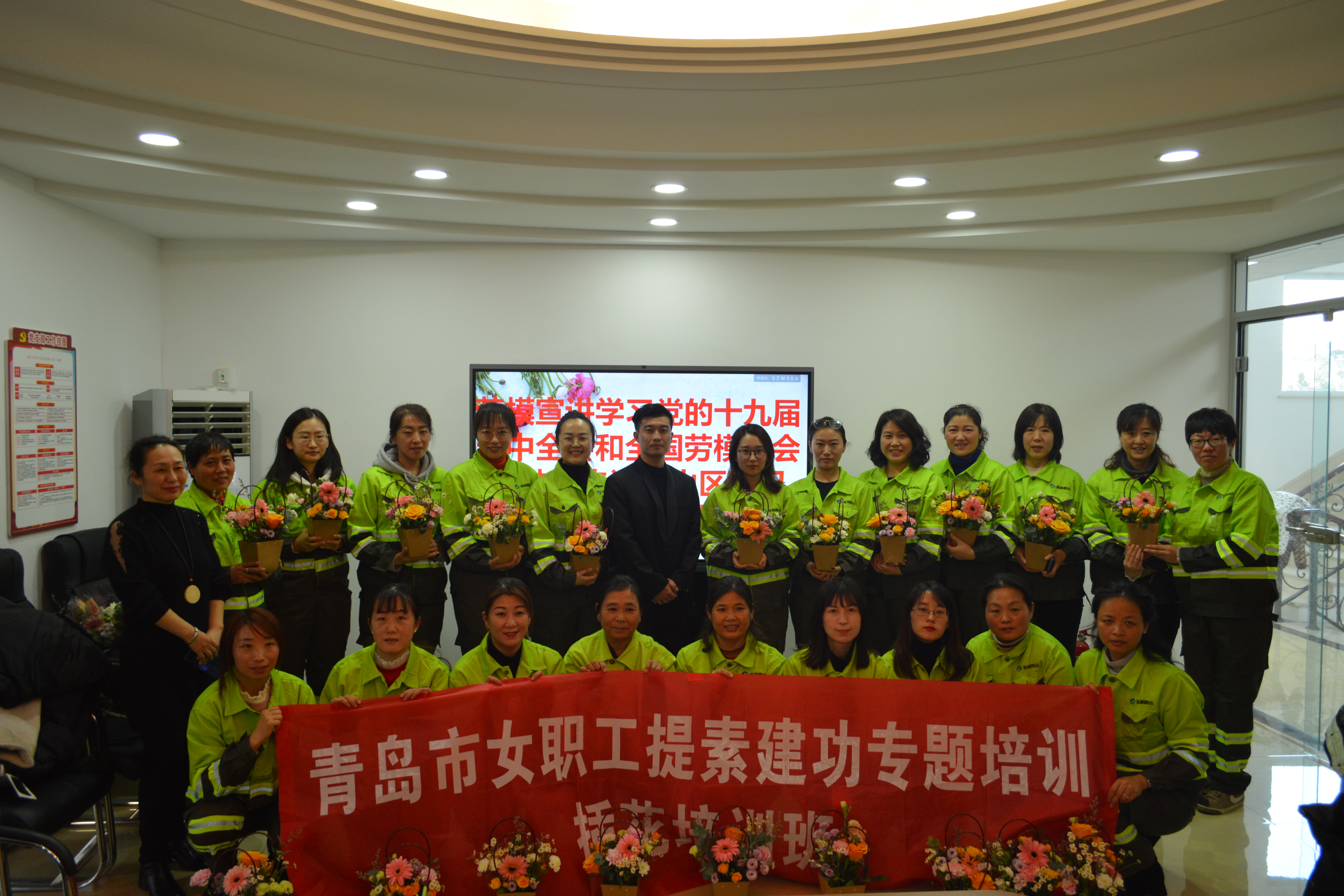 12月16日下午,崂山区总工会联合青岛市文化宫走进崂山区环卫园林总公司,以“宣讲五中全会精神、巾帼建功开启征程”为主题,举办劳模宣讲党的十九届五中全会精神暨走进崂山区环卫园林总公司插花培训活动,来自该企业的22名环卫女职工参加。