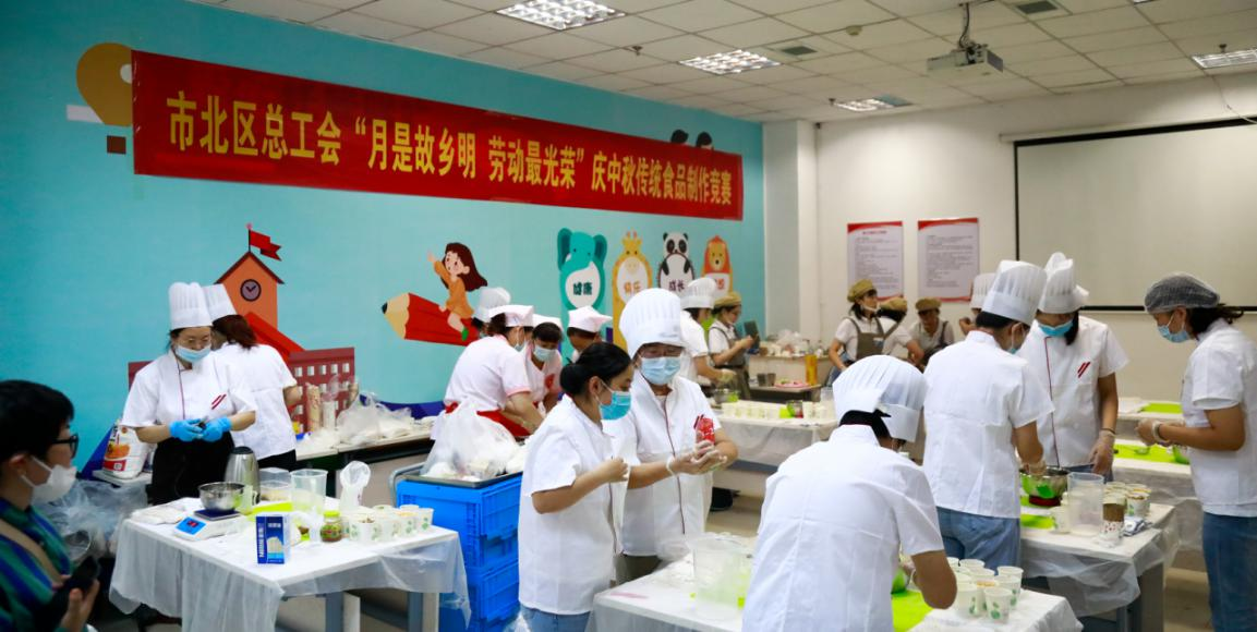 为进一步提升市北区餐饮服务业从业人员的技能水平,加快建设知识型、技能型、创新型职工队伍,营造劳动光荣的社会风尚,9月17日,由市北区总工会主办,市北区工友创业联盟、青岛圣麦园食品有限公司承办的“月是故乡明,劳动最光荣”庆中秋传统食品制作技能竞赛在市北家庭服务业广场正式开赛,来自全区22家参赛单位的98名职工参与竞赛活动。