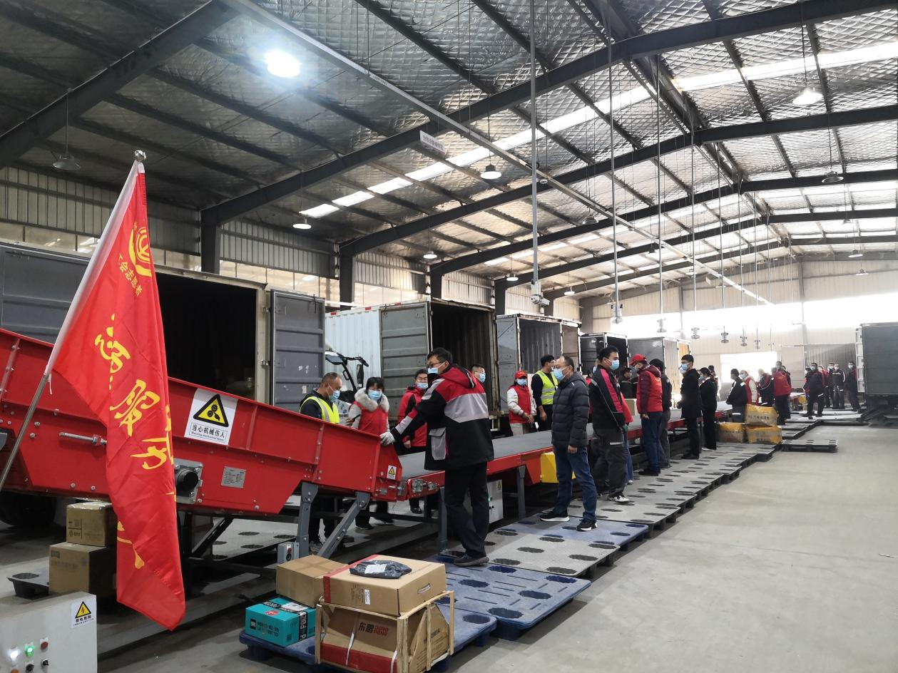 11月10日,平度市总工会志愿服务团队来到顺丰速运站点。一个个红马甲按照区域分工,帮助快递员们分拣包裹。此时统一着装的志愿者成为了分配线上的一道风景线。
