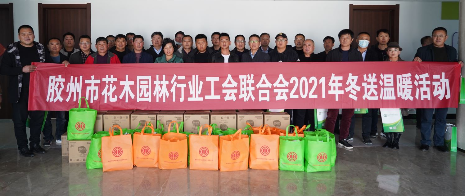胶州市花木园林行业工会联合会自2020年11月份成立以来,积极努力为职工做实事、办好事,不断增强工会组织的凝聚力,当好职工的“娘家人”。2021年12月15日上午,胶州市花木园林行业工会联合会组织开展“2021年冬送温暖”活动,为胶州市花木协会40多家会员企业送去了党和政府及工会组织的关心和冬日里的关怀,使一线职工在寒冷的冬天感受工会组织的温暖。