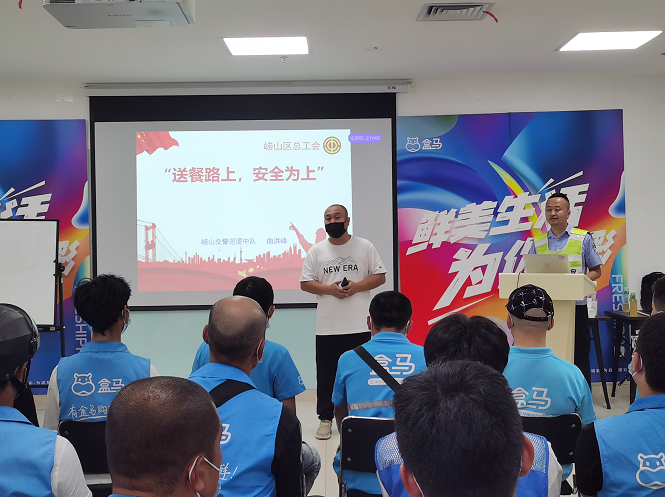 为增强网约送餐员等新就业形态劳动者的交通安全和尊法守法意识,进一步规范促进外卖快递业健康发展,切实维护交通秩序,提升职工文明素质,8月22日,崂山区总工会联合崂山交警大队,走进盒马鲜生大拇指广场店,开展“尊法守法 携手筑梦”服务职工法治宣传行动暨网约送餐员交通安全知识培训。