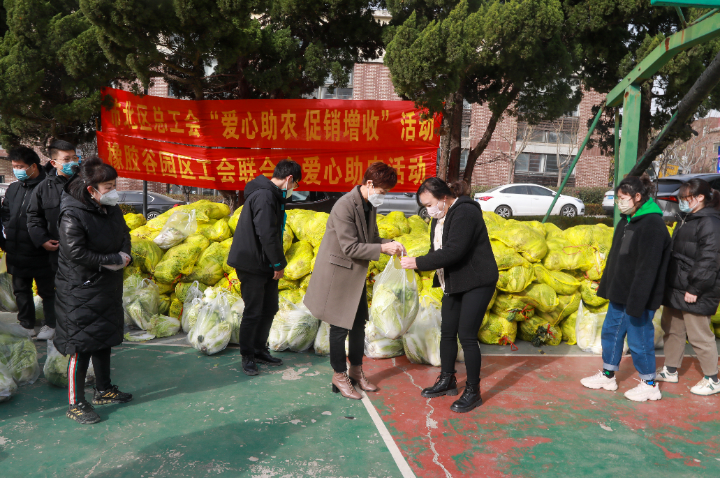 首批农产品是由赛轮集团股份有限公司、软控股份有限公司、橡胶谷集团有限公司、青岛酷友物业管理有限公司、青岛品烁工程管理有限公司等橡胶谷园区工会联合会会员单位集中到平度崔家集镇认购的3万斤白菜。橡胶谷园区工会联合会主席苏玉萍表示,工会组织开展这样的活动很有意义,不仅帮助农户减轻了销售负担,也倡导更多爱心力量加入,让我们的生活因为有了爱而更加美好。