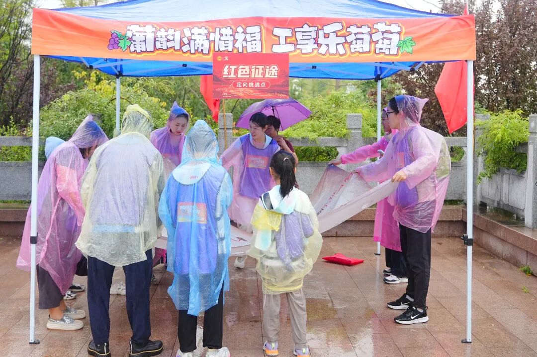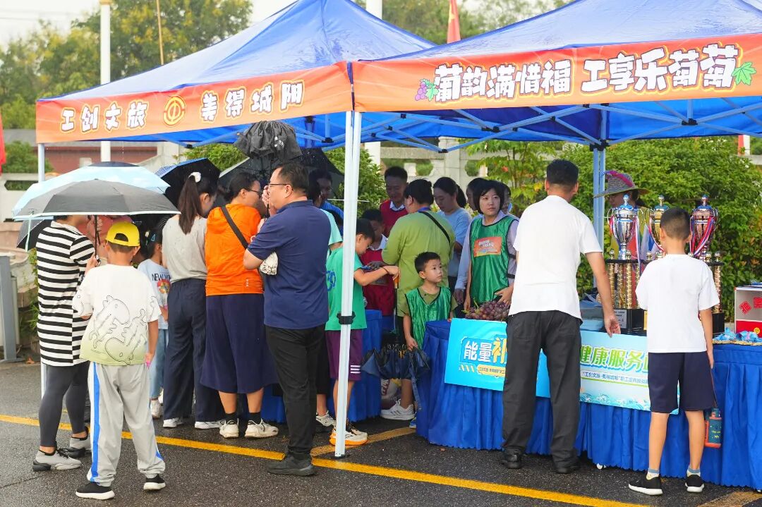 惜福镇街道素有“葡萄之乡”的美誉,本次定向赛深度结合这一特色产业,设置了一系列趣味盎然的葡萄主题任务。“萄醉其中”套圈游戏,让职工家庭在欢声笑语中感受葡萄丰收的喜悦;“其乐萄萄”筷子传“葡萄”接力,考验着团队的默契与协作;“萄你欢喜”彩虹伞发射大葡萄,则将活动气氛推向高潮。这些精心设计的环节,不仅展现了惜福镇葡萄产业的独特魅力,更通过"以赛促产"的方式,有效带动了当地农产品的宣传与消费,是城阳区总工会助力乡村振兴“十大行动”的又一创新实践。