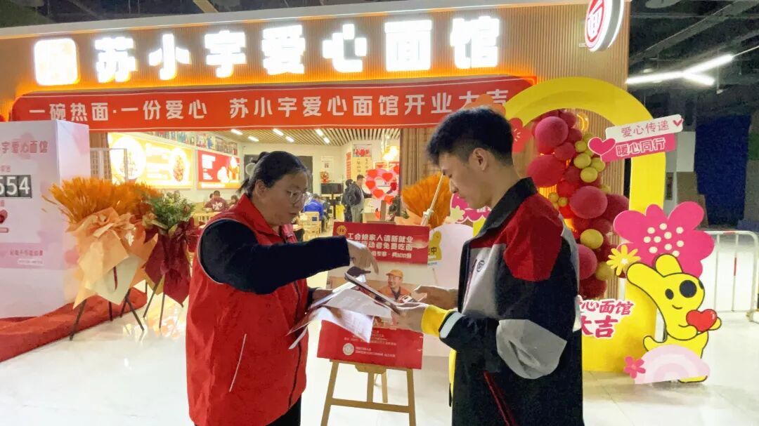 得知“苏小宇爱心面馆”背后的感人故事,城阳区、街两级工会将这份爱心接力传递,在“苏小宇爱心面馆”开展了赠送爱“新”面活动,并为新业态劳动者讲解加入工会的好处和介绍齐鲁工惠APP的服务功能,帮助新业态劳动者网上扫码入会,也有不少劳动者在等待就餐的时间,主动扫码入会,活动开展第一天已新发展52名新业态劳动者加入工会组织。