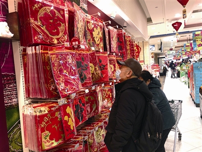 除花市外,随着农历新年的临近,青岛各大市场、商超里的福字、春联以及各类年货也开启了热销模式。