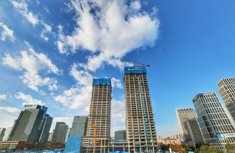 上实超高层双子塔项目封顶。