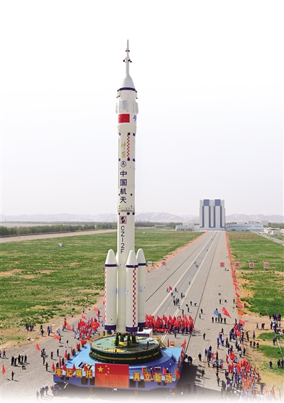 5月22日,神舟十六号载人飞船与长征二号F遥十六运载火箭组合体在转运途中。 |
