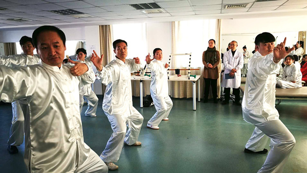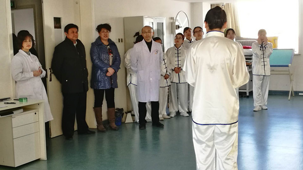 2018年1月2日,湛疗“八段锦”养生功系列培训正式开课。本次课程由副院长李林海主授,全院职工踊跃参加。李林海首先介绍了“八段锦”的历史由来及其功效,然后带领大家逐一学习了一、二节功法,仔细讲解了每一个动作标准及其意境所在,强调了在做“八段锦”的过程中,需要凝神,要用意识去感知身体各个部分的动作。职工们聚精会神地学习每一个动作,遇到盲点时,积极讨论,使个人动作更加规范有效。经过为期一个月的“八段锦”养生功系列培训课程,大家都熟练掌握了每一节功法的动作要领和诀窍。