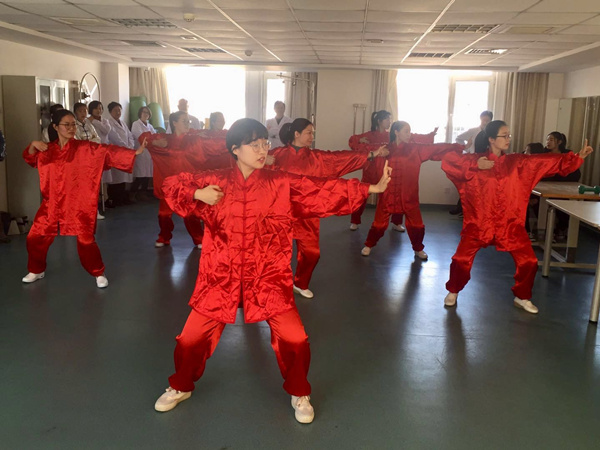 2月6日,“八段锦”表演比赛团体赛在D座四楼OT室正式开始,大家以高昂的精神面貌,精准的动作出色完成了比赛。通过这次“八段锦”养生功系列培训及表演赛,既丰富了职工业余文化生活,又提高了健康管理团队的健康干预和指导技能,为打造行业领先的健康管理中心奠定了坚实的人才基础。