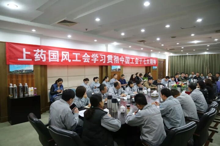 10月30日、31日,从北京参加中国工会十七大归来之后,上药国风党委书记、副董事长、工会主席孟庆敏先后主持组织两场次的上药国风学习贯彻中国工会十七大精神会议,传达大会精神,畅谈与会感受,分享心得体会。公司党政班子、基层党组织书记、部室负责人以及各级工会干部参加学习。