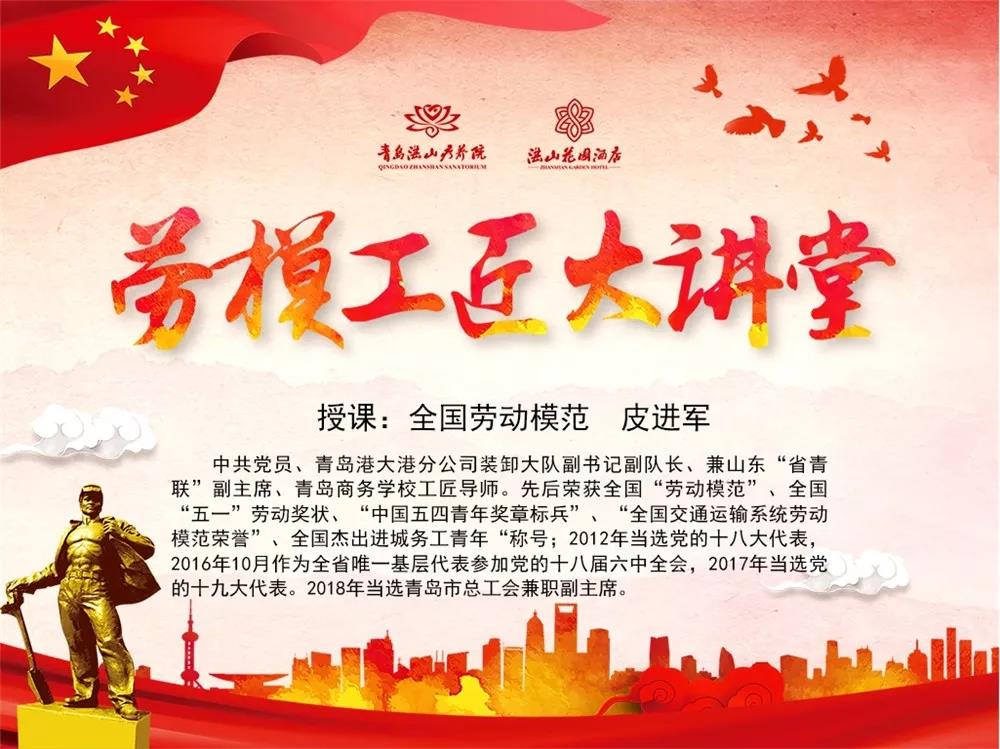 为大力弘扬“劳模精神、劳动精神、工匠精神”,进一步加强劳模工匠示范引领作用,12月10日,湛疗特邀全国劳动模范、全国五一劳动奖章获得者,党的十八大、十九大代表,青岛港装卸大队副队长,青岛市总工会兼职副主席皮进军,为来自水务集团、华通集团的80名一线疗休养职工举办了第二十一期“劳模工匠大讲堂”主题授课活动。