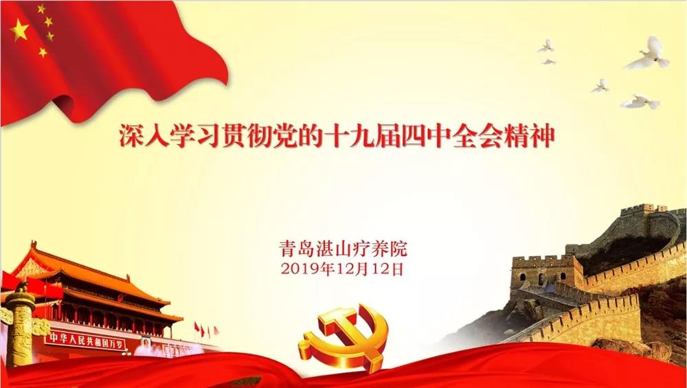 毛勇强调,全体党员干部和职工要认真学习贯彻党的十九届四中全会精神,原原本本学、逐字逐句学、系统深入学,把学习贯彻全会精神与巩固“不忘初心、牢记使命”主题教育成果紧密结合起来,与湛疗各项工作紧密结合起来,以党的政治建设为统领,把各项工作向前推进,向上提升,把湛疗打造成为全国一流的职工疗休养基地,行业领先的职工健康管理中心,具有特色的医疗康复中心,做新时代疗休养事业的排头兵、领头雁,为实现“两个一百年”奋斗目标、实现中华民族伟大复兴的中国梦而努力奋斗。
