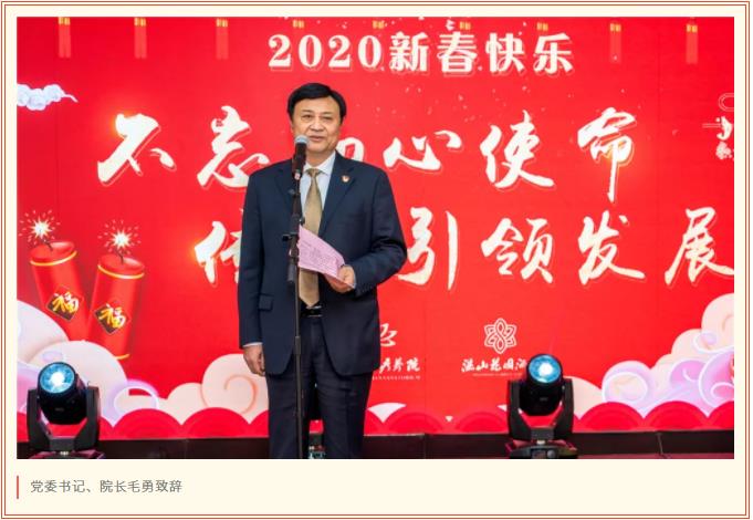 党委书记、院长毛勇发表了热情洋溢的致辞,感谢全体职工一年来的辛勤付出,并致以美好的新春祝福,激励大家要以习近平新时代中国特色社会主义思想为指导,深入学习贯彻党的十九大和十九届四中全会精神,树牢“四个意识”、坚定“四个自信”,坚决做到“两个维护”,以党建为统领,抓党建促发展,全力打造“旗红院美”党建品牌和“关爱健康,崇尚劳动”服务品牌,以更加优异的成绩迎接湛疗建院70周年。