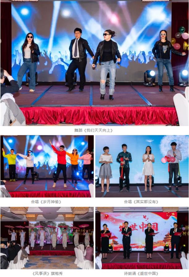 舞蹈《我们天天向上》充满时代气息,跳出了青年人的蓬勃朝气;合唱《岁月神偷+其实都没有》表达了一个朴素道理,时间对谁都是公平的;在《风筝误》优美的旋律中,旗袍秀成为一道靓丽风景;诗朗诵《盛世中国》讴歌了伟大祖国奋进70年的光辉历程。