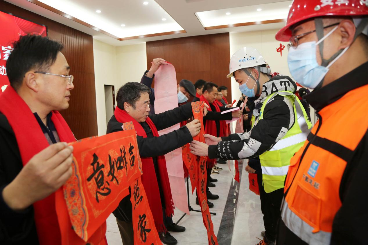 随后,出席活动的嘉宾和书法家们将写好的春联、福字送到一线工友手中,并合影留念,表达对一线工友诚挚的祝福。
