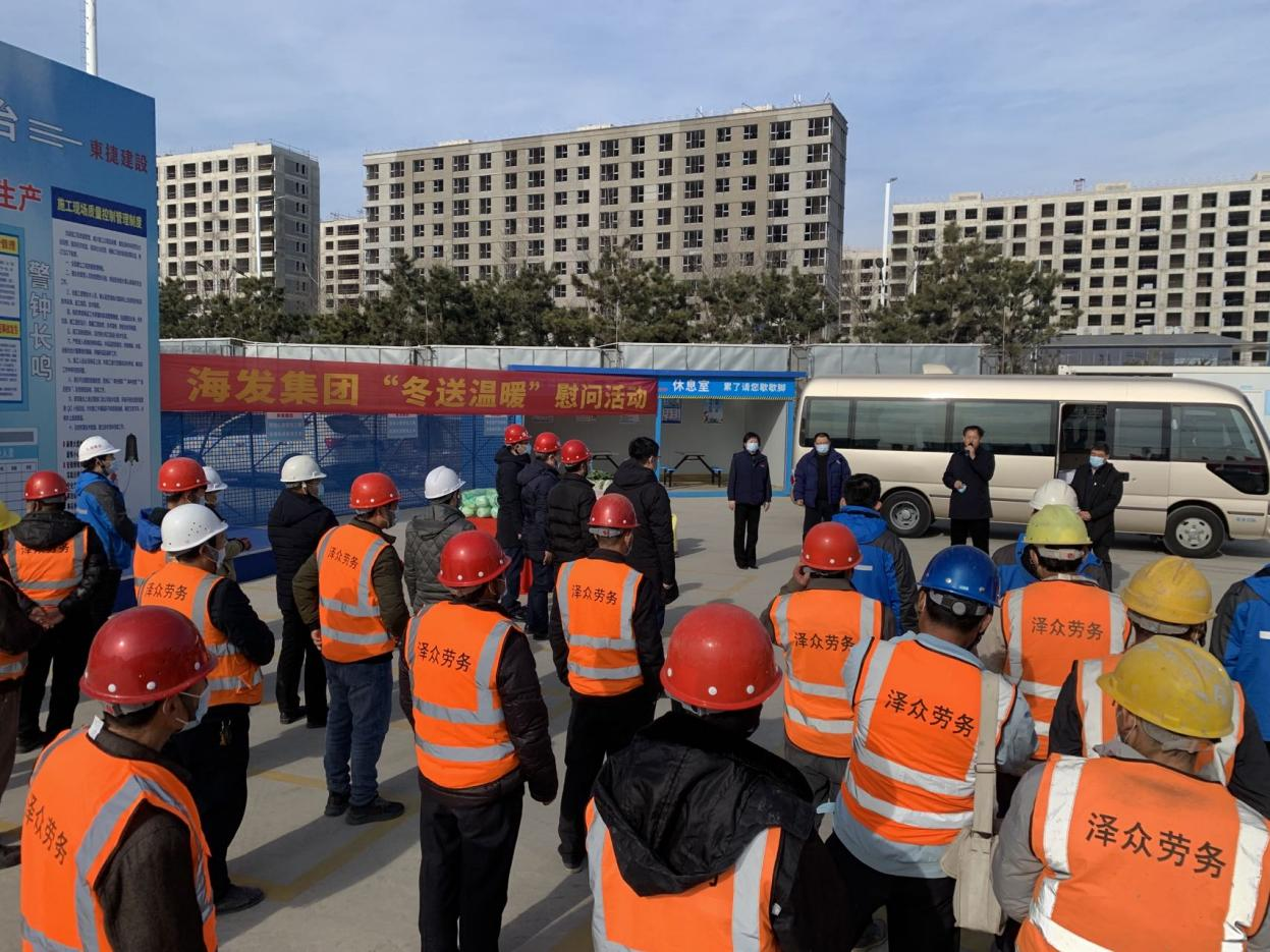 近日,海发集团党委委员、纪委书记付元庆,海发集团党委委员、副总经理王学军及海发集团工会副主席刘伟杰等领导一行和相关项目负责人,深入项目工地一线,看望慰问坚守在一线的建设者们,将准备好的猪肉、蔬菜、大米、食用油等慰问品送到他们的手中,并亲切的询问了大家的工作情况,牢牢叮嘱大家,在冬季工作中要注意防寒保暖、合理安排作息时间,保质保量完成工作任务的同时,务必做好疫情防控等工作,保证身体健康。