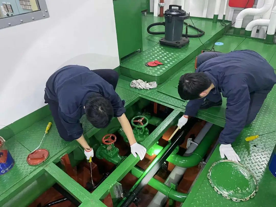 轮驳公司针对船舶机舱和甲板关键设备的运行机构、重要安全装置、大型机械设备防风装置和电气设备的运行与绝缘情况开展隐患排查工作。