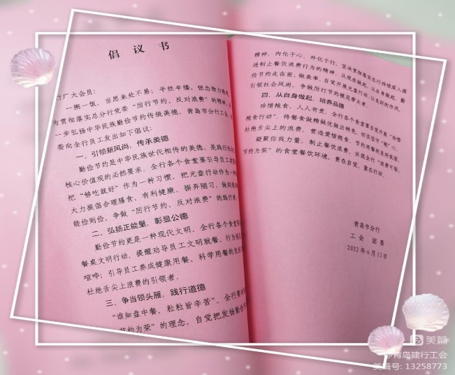 为进一步贯彻落实习近平总书记重要批示精神,持续深入推进节约粮食制止餐饮浪费行为,建行青岛市分行采用“六个子”工作法全面推进制止餐饮浪费行为工作落地见效。