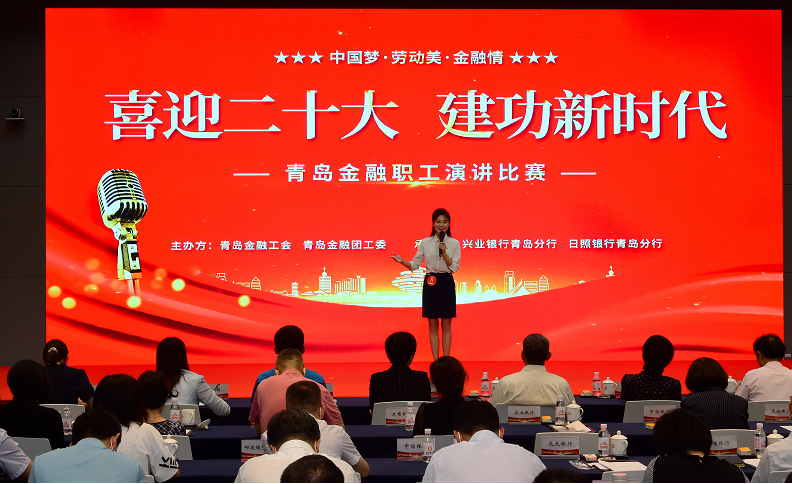 近日,青岛金融工会举办了“中国梦.劳动美.金融情——喜迎二十大 建功新时代”职工演讲比赛。活动由青岛金融工会、青岛金融团工委主办,兴业银行青岛分行、日照银行青岛分行承办。青岛银保监局二级巡视员赵东生同志出席活动并讲话,日照银行青岛分行负责同志出席并致欢迎辞。市总工会、市文联、市金融工会、金融团工委、市演讲与演唱协会、招商银行青岛分行有关同志参与了现场评审。