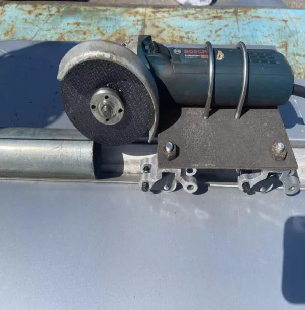 利用钢板、滑轮滑轨、固定圈,延长杆等零部件为角磨机打造了一套操作配件,在切割作业时,角磨机固定在滑轮上,与滑轨相配合完成直线切割,操作人员通过推动延长杆,即可保证在安全范围之内操作,不仅降低了安全隐患,还极大程度提高了切割件的良品率,累计压降维修成本20余万元。