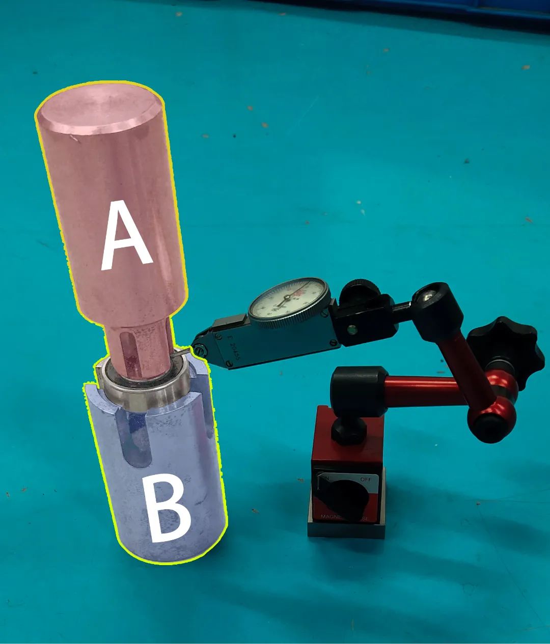 为解决这一情况,轴承游隙检测专用工具应运而生,该工具由A、B两部分组成,只需将轴承放置在A、B两部分中间,即可用检测表准确检测当前轴承游隙,自2022年3月以来,通过采用此工具定期对长输泵轴承进行测量,并及时调整,至今再未出现振动停泵情况,保障长输作业高效运行。
