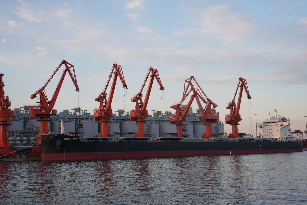 大港公司大年初一,在港8条船舶作业,昼夜完成4.5万吨,其中57区“风神”轮玉米卸船灌箱,创出单班273TEU的生产高效,铜精矿三条火车作业线,当班安全优质完成53车。