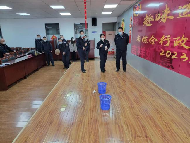 趣味运动辞旧岁,欢歌笑语开新篇。2月3日,市综合行政执法支队工会举行迎新年趣味运动会,此次运动会设置了投掷羽毛球、夹乒乓球、飞镖、保龄篮球、够级等5个比赛项目,融竞技性与趣味性于一体,是智慧、体力、技巧、协作的综合角逐与比拼。