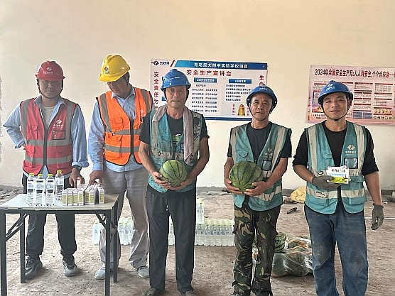 7月9日,沙特阿尔加特600MW风电EPC项目组织开展“夏送清凉”慰问活动,为奋战在高温下的中外职工送去清凉与关怀。项目部根据广大职工需求,提前筹备物资,精心制定慰问计划,为大家发放饮料、水果等物品。同时,项目部以此次活动为契机,提前组织开展防暑降温劳动保护专项培训,全面提高员工的防中暑安全意识和应急处置能力。