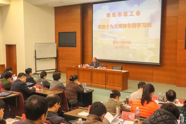 为深入学习贯彻党的十九大精神,充分发挥工会干部在学习贯彻党的十九大精神中的示范和带动作用,11月27日至12月1日,青岛市总工会在青岛干部学院举办了两期党的十九大精神专题学习班。市总工会全体干部、直属事业单位班子成员,以及市直工会主席、副主席共220余人分别参加了培训。