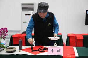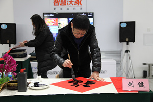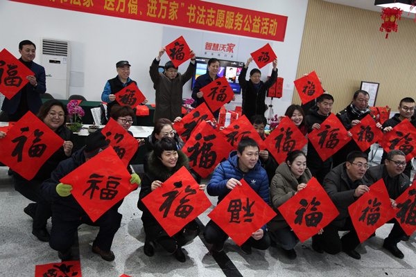 为深入学习宣传贯彻习近平新时代中国特色社会主义思想和党的十九大精神,抒写新时代、凝聚正能量,为广大人民群众送上新春祝福和文化大餐。2月6日上午,青岛市总工会主办,职工文体中心承办的“送万福、进万家”书法志愿服务公益活动在山东路联通营业厅火热进行。
