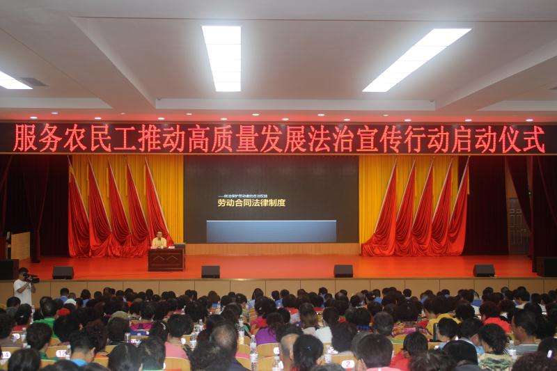 9月20日上午,“尊法守法•携手筑梦”服务农民工推动高质量发展法治宣传行动启动仪式在青岛市城阳蔬菜水产品批发市场举行。市总工会副主席梁海泉等出席仪式,中国海洋大学的志愿服务分队代表、城阳蔬菜水产品批发市场农民工代表共300余人参加了启动仪式。