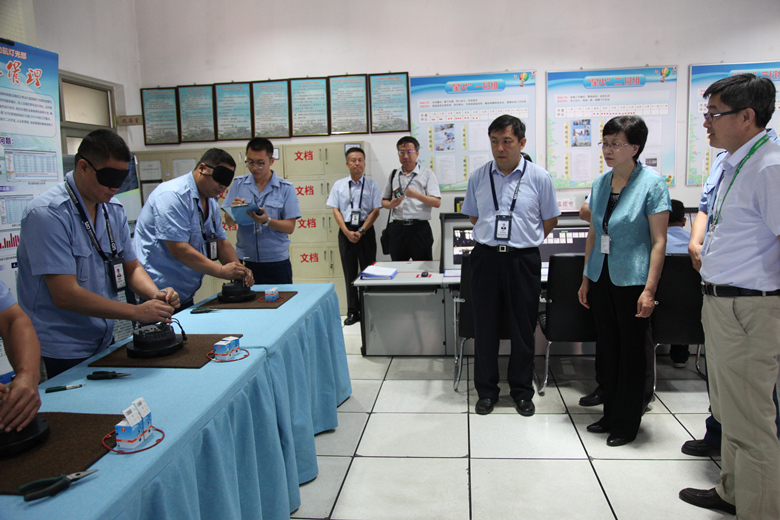调研组首先来到飞行区管理部北部灯光站,听取了山东省劳动模范高占华关于劳模创新工作室建设情况及导航UHD系统应用情况的汇报;现场观看了由青岛机场在民航系统首家推出的“盲装灯具”技能比武,对只用了4分多钟就完成盲装灯具组装的职工给予了高度评价,称赞道:“这就是工匠精神,是对“干一行爱一行,专一行精一行”的最真实的诠释与体现。
