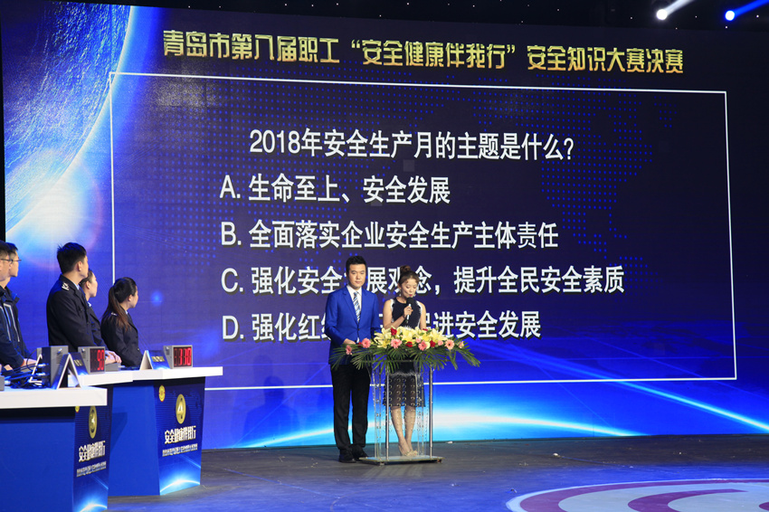 据了解,活动自8月份开展以来,得到了各区、市人民政府,市政府有关部门,各有关单位的积极响应和广大职工群众的热情参与,在全市企事业单位中掀起了学习《安全生产法》、《工会法》、《职业病防治法》、《劳动法》、党中央和国务院《关于推进安全生产领域改革发展的意见》及《工伤保险条例》、《山东省安全生产条例》等法律法规的热潮,取得了良好的社会效果。据不完全统计,全市有近150万职工直接或间接参加了各级政府及企事业单位组织的安全知识培训竞赛活动,此外还有更多的人通过网络学习等形式受到了教育。最后经过各级工会组织层层选拔,共有62支代表队(每个代表队3名职工)参加全市大赛活动。大赛分初赛(笔试)、复赛和电视决赛三个环节,经过数轮的角逐和选拔,市北区等八支代表队顺利晋级进入电视决赛,可以说,每次得分都是智慧的比拼,每场比赛都是勇气的较量,比赛可谓跌宕起伏,精彩纷呈。