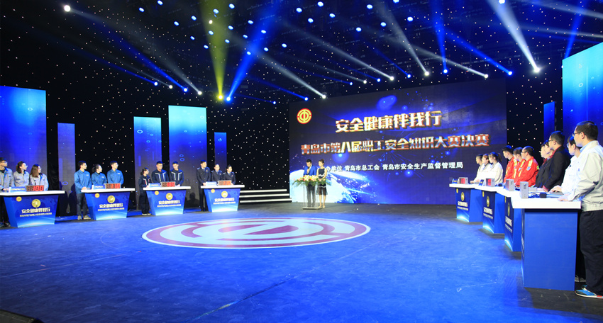 11月27日下午,市总工会与市安全生产监督管理局联合举办的青岛市第八届职工“安全健康伴我行’安全知识大赛电视决赛在市广播电视台800平演播大厅进行,标志着历时3个多月的全市职工“安全健康伴我行”安全知识培训大赛活动完美收官。市总工会党组书记、常务副主席彭建国、市安监局副局长刘树业、市建委副主任刘玉勇、市总工会副主席梁海泉、市广播电视台副台长毛元辉等领导出席活动,并现场为获奖的选手颁发奖金、奖杯和荣誉证书。市卫计委、市安监局、市建委和市总工会相关处室负责人及部分企事业单位代表共300余人现场观看了电视决赛。
