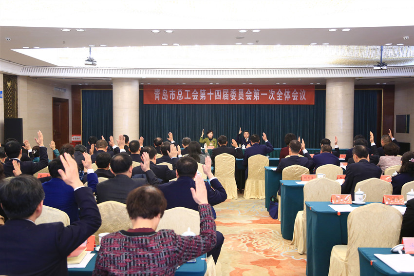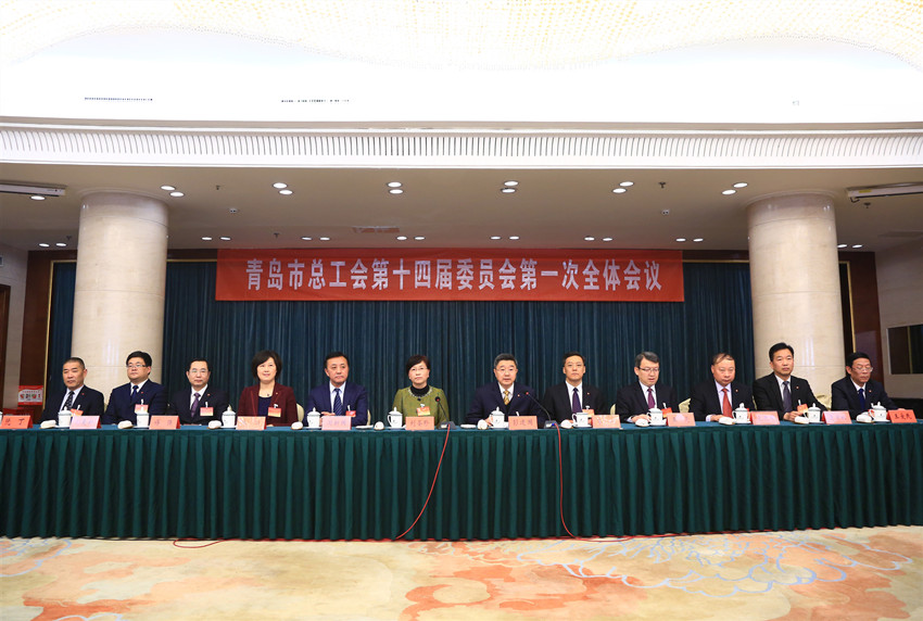 高举习近平新时代中国特色社会主义思想伟大旗帜,在以习近平同志为核心的党中央坚强领导下,认真落实市委和上级工会的工作要求,携手同心,奋力开拓,以永不懈怠的精神状态和一往无前的奋斗姿态,真抓实干,埋头苦干,率先走在前列,团结动员全市广大职工加快建设现代化国际大都市,共同谱写青岛人民美好生活新篇章!