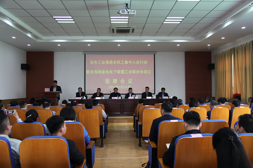 3月26日,青岛市工会推进农民工入会集中行动启动观摩会议在西海岸新区召开。会议的主要任务是深入学习贯彻习近平新时代中国特色社会主义思想和党的十九大精神,认真落实习近平总书记同中华全国总工会新一届领导班子成员集体谈话中要最大限度把农民工吸收到工会中来,使他们成为工人阶级坚定可靠的新生力量的指示要求,开展全市工会推进农民工集中入会行动,交流建会经验,观摩实体职工之家建设,部署2019年攻取基层组建山头工作,全面推进全市工会基层组织建设水平。