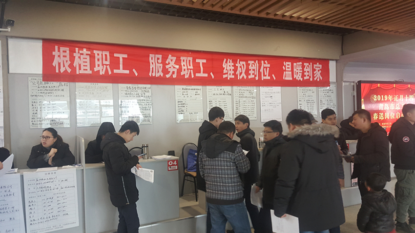为贯彻中央经济工作会议精神,落实党中央、国务院打赢脱贫攻坚战决策部署和工作要求,促进我市就业创业困难人员顺利就业,2月18日(农历正月十四)上午10:00,青岛市总工会“春送岗位”招聘会启动仪式在城阳区中劳网汽车北站人才市场举行,活动现场人头攒动,约3000名求职者和返乡农民工到现场求职咨询。活动将持续至3月22日(农历二月十六),在此期间,青岛七区四市的190余家企业参加招聘会,将提供4800余个就业机会。