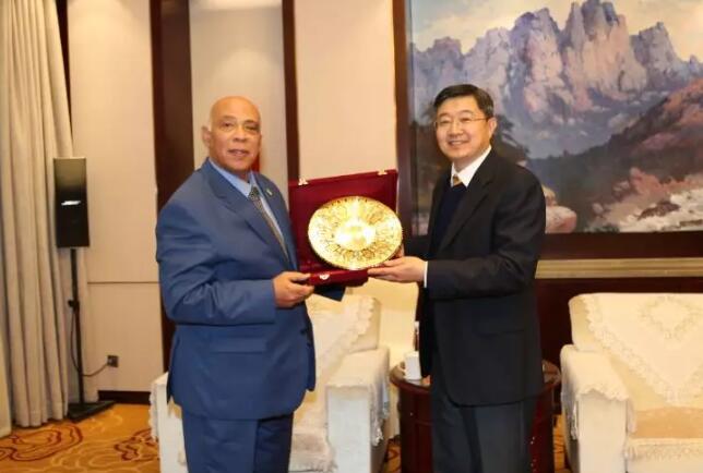 他说:中国与埃及的友谊是经历过历史的长久的友谊。青岛是我们心目中很好的城市。这次来青岛访问,也是响应近期在北京召开的“一带一路”会议精神。“一带一路”的发展对于埃及、中国以至于世界的和平发展都有相当的益处。他表示埃及海员工会愿与青岛市总工会共同推进两地产业工人间的友好交往。