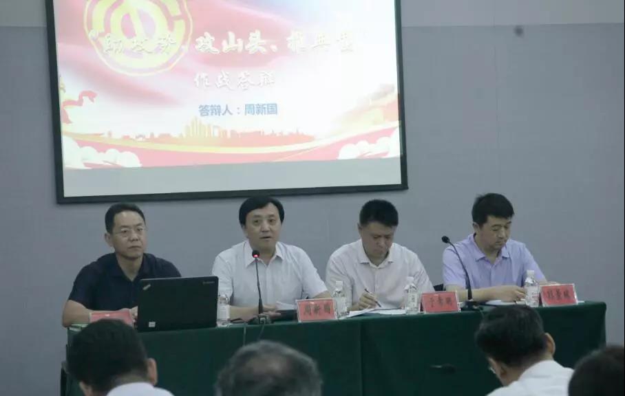市总工会党组书记、常务副主席彭建国出席答辩并主持。各区市和市直有关单位的工会主席,市总工会机关全体干部和直属事业单位主要负责人,劳模工匠及一线职工代表共100余人参加首日答辩。答辩会上,市总相关领导作为主答辩人,机关各相关部门负责同志作为副答辩人,面向观众接受现场提问。当日为“攻山头”作战方案答辩,主汇报人、市总工会领导周新国、孙更新、逄京林分别汇报了基层组织建设、打通维权服务职工“最后一公里”、 “智慧工会”建设、产业工人队伍建设改革等四项攻势作战方案,介绍对标先进城市工作亮点,分析青岛工会工作开展优势,详细阐述实施活动、项目及措施,并说明保障措施。