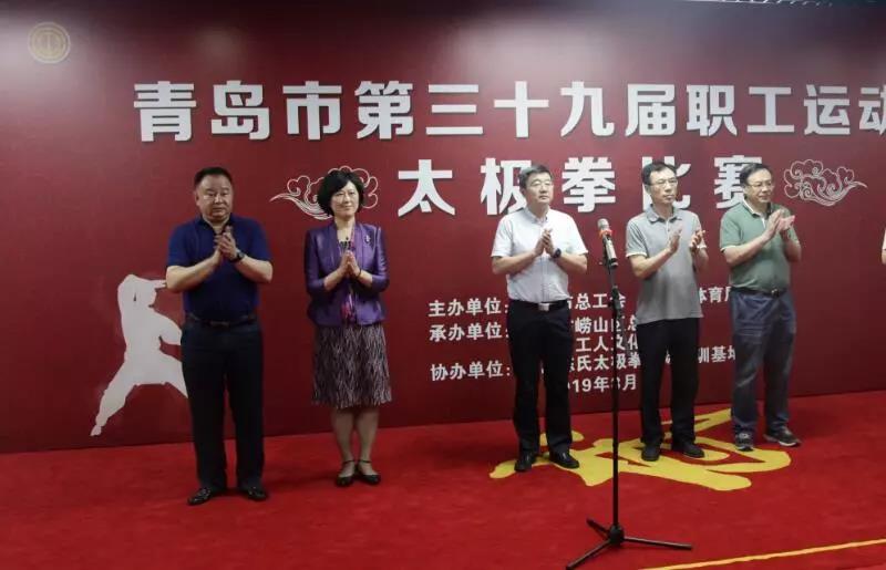 8月17日,由青岛市总工会和青岛市体育局主办、崂山区总工会和青岛市工人文化宫承办、青岛陈氏太极拳国际培训基地协办的青岛市第三十九届职工运动会太极拳比赛在青岛陈氏太极拳国际培训基地隆重举行。市总工会党组书记、常务副主席彭建国,市总工会党组成员、副主席李丽,崂山区人大副主任、区总工会主席宋军,青岛市工人文化宫党委书记、主任尹常忠出席比赛活动并为获奖代表队颁奖。来自全市各行各业13个代表队的286名职工选手参加了比赛。