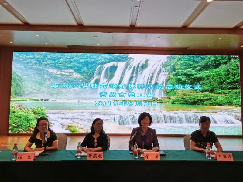 9月3日,青岛总工会组织劳模赴安顺开展疗休养活动启动仪式在安顺市华通大酒店“青岛市职工疗休养基地”举行。青岛市总工会党组成员、副主席李丽同志出席并讲话,李丽代表青岛市总工会和安顺疗休养基地的全体员工对劳模们参加疗休养表示最真挚、最热烈的欢迎!