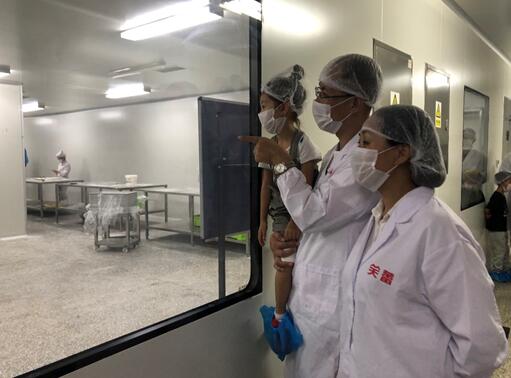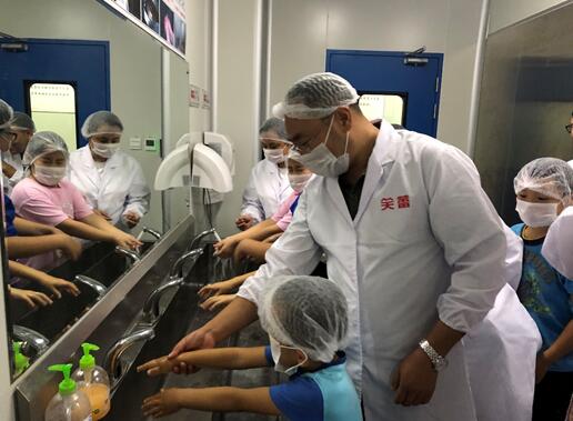 参观活动开始前,工作人员为孩子和家长发放了统一干净的工服,经过洗手、风淋等多个消毒环节大家顺利进入了面包生产车间。“面包是怎么制作出来的”,“我们平时吃的面包安全放心吗”,面对家长和孩子在参观过程中一个个的提问,产品研发师在参观过程中一一给出了解答。配料室、烘培室……学生和家长在参观过程中对面包生产车间逐一进行了参观,对面包的生产过程有了更直观的认识。